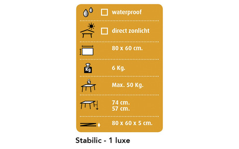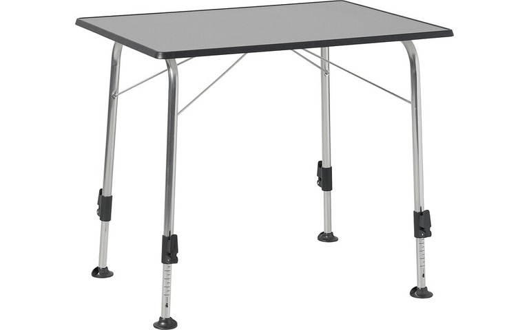Stabiler und Klappbarer Tisch mit einer wetterfesten Sevelite Platte. Höhenverstellbar von 57 - 74 cm. Gestell 25 mm Aluminium. Die Besonderheit dieser Komfort-Tischserie: ultraleicht, wasserfest, standfest auf jedem Untergrund, stufenlos verstellbar.